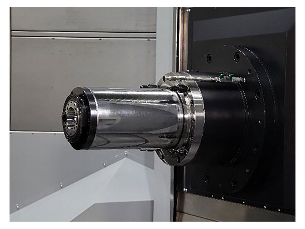 The spindle is cooled using a chiller unit, and a high-power spindle is available for heavier cutting.
