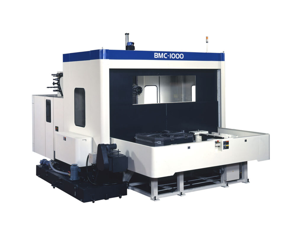 The machines use a shuttle-type pallet changer in order to accommodate large heavy workpieces and, when fitted with linear scales, achieve an accuracy of ±0.002 mm over the full axis strokes. A full 5-axis BMC machine is available using a trunnion type table for complex workpieces.